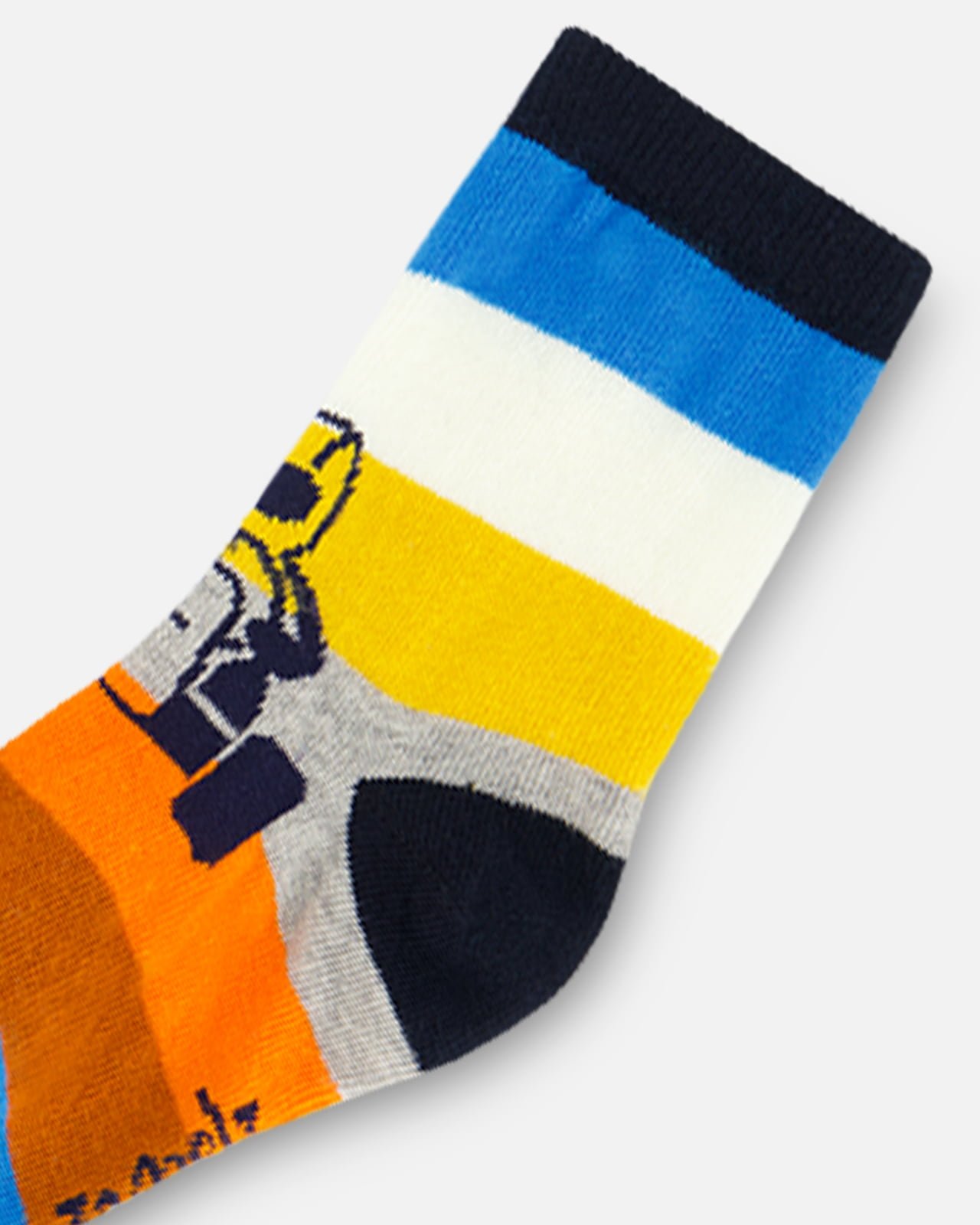 Nos chaussettes à rayures ajoutent instantanément de la personnalité à sa garde-robe ! Douces et extensibles en coton/nylon, ces chaussettes ont un motif rayé coloré avec un kart, des talons et orteils unis, et un logo sur le bas du pied.