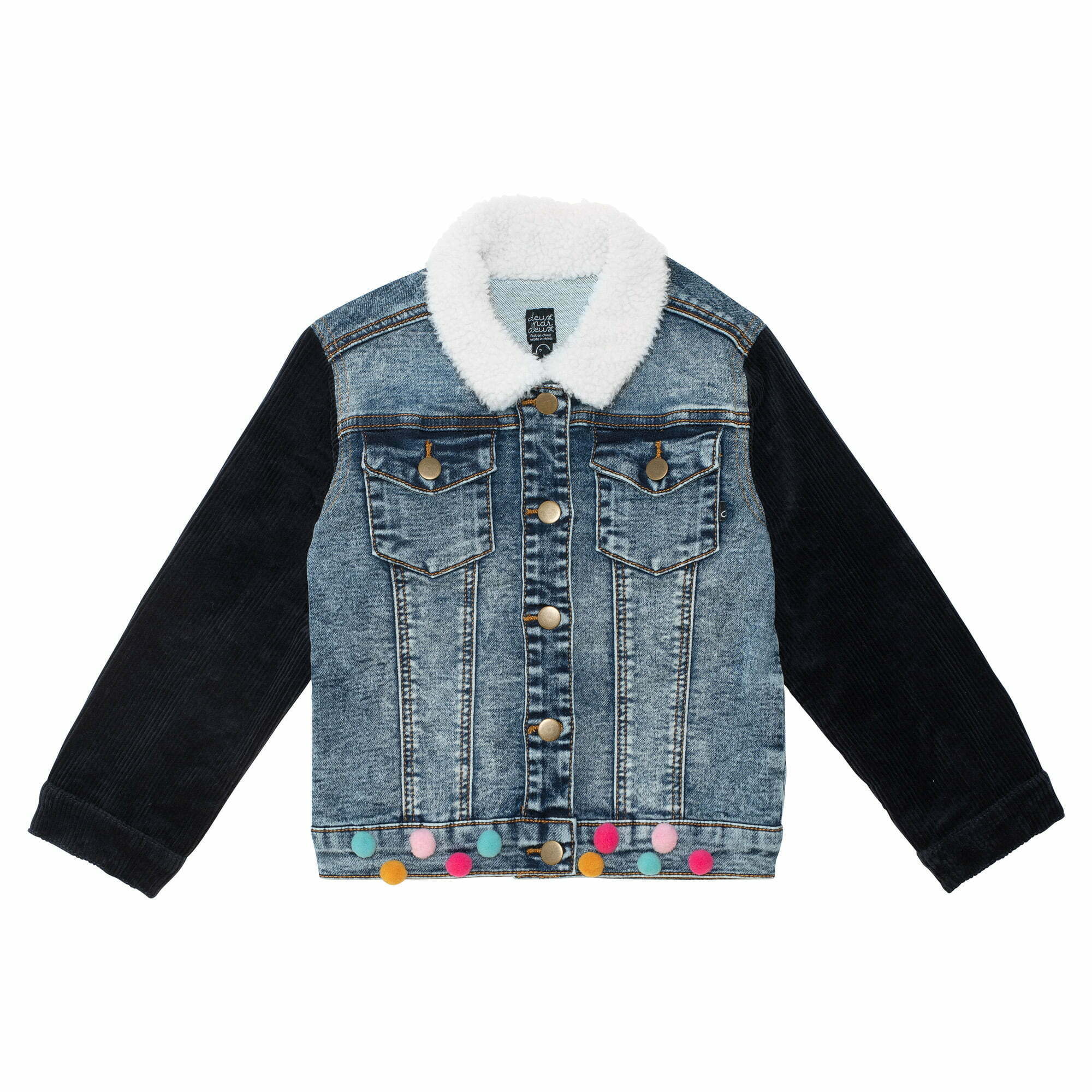 Collection Planète Pompon. Veste en French Terry de Denim avec col en sherpa. Les pompons colorés ajoutent de la texture et de la fantaisie à notre veste en French Terry de Denim avec col Sherpa. Fabriquée à partir d’un mélange de coton extensible, cette veste présente des manches en velours côtelé contrastées, une patte de boutonnage à l’avant et un col sherpa contrastant qui ajoute une touche très confortable. Elle comporte des poches à rabat sur la poitrine et des ornements de pompons à l’ourlet. Bleu jean, marine, blanc, couleurs mélangées.